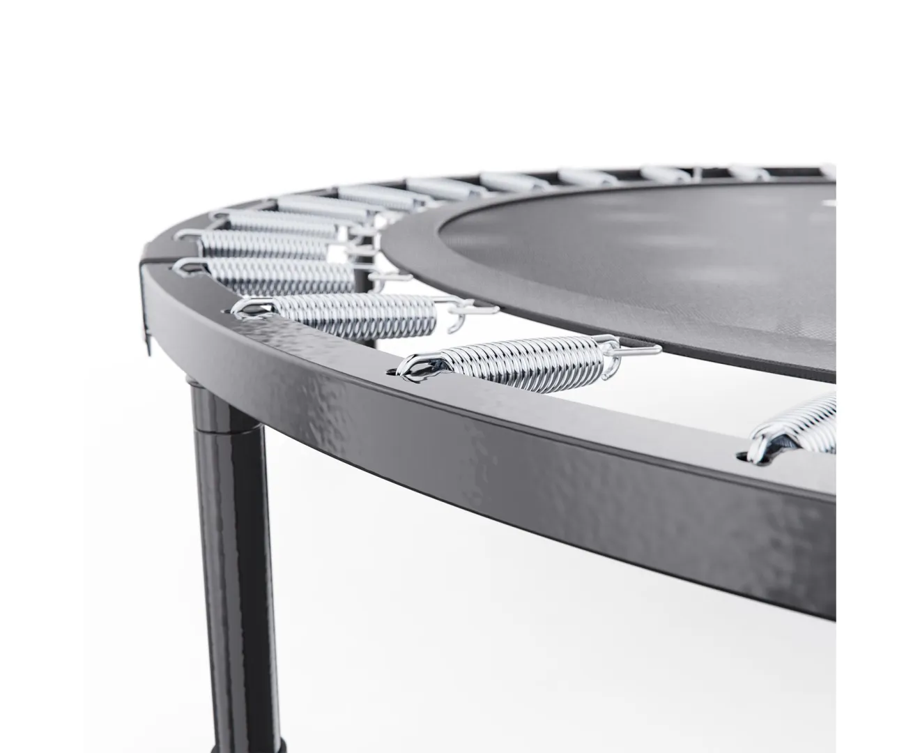 Рама выполнена из металла: основная труба диаметром 25 мм с толщиной стенки 1,2 мм, шесть ножек диаметром 25 мм с толщиной 1,5 мм. Конструкция устойчива на любом покрытии. В комплекте 32 пружины, обеспечивающие равномерную амортизацию и мягкость прыжков.